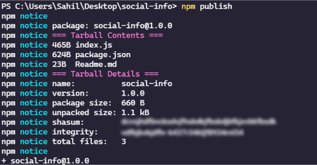 Now, in the index.js file, we will write the main logic for our package. As I mentioned earlier, this package will log social media links. The logic is as follows:
