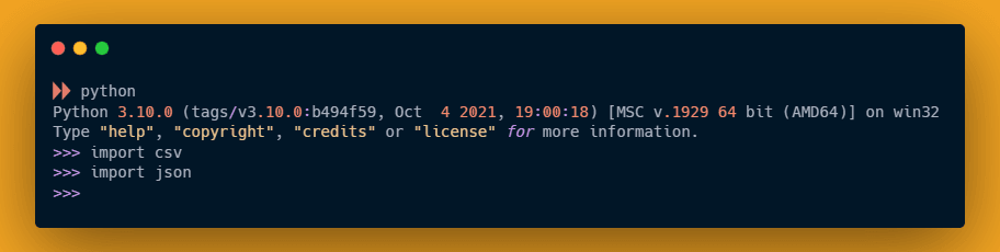 In python, we have csv and json named inbuilt packages. To use these packages we need to import them the same way we imported the xlsxwriter package.